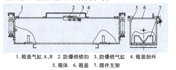 自動控制防爆箱是一種自動開合裝置,通過氣動閥門的配合,達到防爆箱自動開合、自動插拔防爆銷的目的,且具有警告模塊,當未插安全銷時,具有聲光報警功能。2、裝置組成