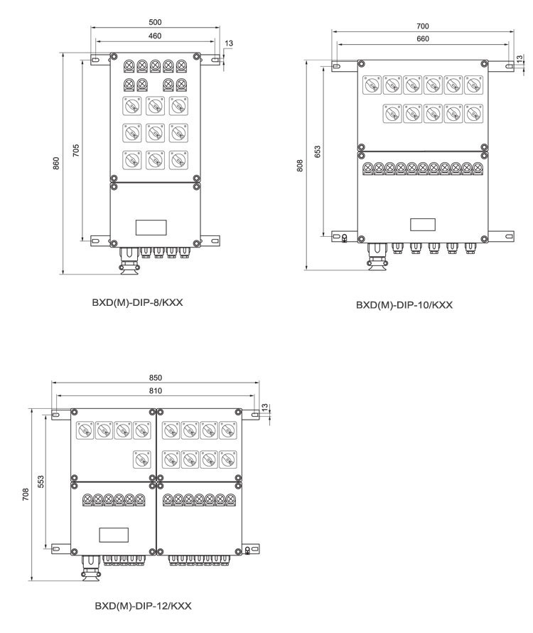 BXM(D)-DIP系列照明(動力)粉塵防爆配電箱外型及安裝尺寸舉例: